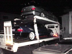 雨の中積み込み完了っ!明日のGO−WEST参加台数はE46M3が1台・E36M3Cが4台・318isが5台の計10台で〜す。ご参加の皆さんガンバリませう。参加各位が気になるのはやはり天気っすよね〜。。で〜も〜私は晴れ男ですんで〜絶対、ぜったい、ゼッタイに雨は降りましぇんっ!キッパリ!