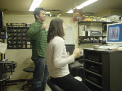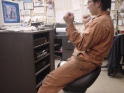 続きましてー、白Pの挑戦。インストおねーさんの動きにイマイチついてって無いような。。体堅いんちゃう?リズム感の問題か? 筋力的には全然平気らしい。さすがお若い。。んで、どーでもイイんですけど、オレンジ色のツナギって、USAの収監服に見えるのは、私だけ。。。