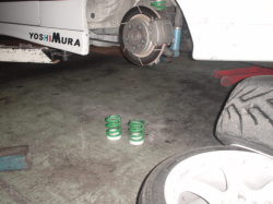 23日の日曜日、岡山国際にて開催されるGO−WEST走行会に参加するのですが、天気予報では今のトコロ、、雨!。。はぁ??。。。晴れ男の私としては絶対降らないと思っとります。そうゆう事で完全ドライセッティングで行きまっせ。。サスのレートも上げたった!へんっ!どうせレインタイヤどころか新品タイヤも無いしぃぃーー絶対に雨はふらん!