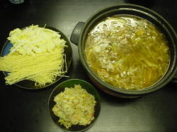 ラーメン鍋と焼飯。。休み明けはヘビーです。ドタバタジタバタして只今23:00越え、1段落。。 腹へリーの夜食。鍋中は、豚・モヤシ・人参・ニラ・白菜投入済みに付き、最近流行り?かどーか知ったこちゃないが、鍋用のラーメン麺を加えて喰う。焼飯は昼の御飯の残りを玉子で。 春を想わす日中でしたが夜の冷え込みは相変わらず、、、冷えた側と胃にホットタイムです。。
