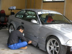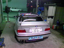 今月23日のユーロカップには私(髭)は画像の318isで参戦する事になりました。。しかもNクラスでのエントリー! レギュレーション的にはLSDと足回りはOKで、内装付き(助手席、リヤシート取り外し不可)マフラーは触媒から後ろだけ交換可、おまけにSタイヤが不可とか、かなり厳しいすっ! 取りあえず、足回り、LSD、オリジナルホイルにR1−Rを組み、バケットシートに4点ベルトで本日練習に行って来ました。その結果は??