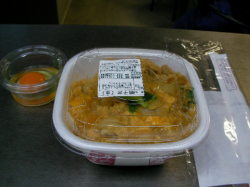 23時も過ぎる頃、なんか食べに行こうとN爺に申しましたが、時間が圧してるので無理ぽ状態。。ハミル豚と髭と母で中卯へ。。ハミル豚は勝つカレーとミニうどん。風邪気味なのに元気な奴。カツ=勝に拘ってるとか?ないない。。母と髭は画の物と同じ親子丼+卵。。。実はーー、先だってクーポンを入手。卵かミニうどんか味噌汁が無料なのれーす! N爺用のテイクアウト親子丼にもクーポンで生卵付き。食べ終わる頃、パブドンゴールドを呈しました。。薬嫌いのN爺。服用するかなぁーーヘンコだし。。飲みよった!素直じゃんっ!熱出して寝込む暇、既に無しっ!だもんな。。 言わずと他3名も投入済み。