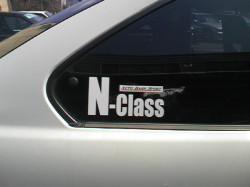 この画像はS島様のM3ですがよく見るとリアガラスにM−POWERのハチマキステッカーが!これカッコイイでしょ?K科様作のフロント用ですが、リアガラスにも似合うかも?っと皆、何故かハイテンションで速攻で貼っちゃいました!フロントにもアウトバーンハチマキが付いてかなりレーシーになりました、うーん。。。コンマ5秒アップっすね! byハミル豚