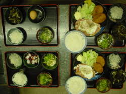 土日休みのABS食堂、今週ラストの献立は明後日ユーロに勝つ!てんで「豚ロースカツ・ヘレカツ・玉ねぎフライ・千切きゃべつ・水菜の味噌汁」 寝不足続きのABS..泣いても笑ても明後日は夜明けから出陣せねばなりませんっ ヘタッてる暇は無い。もう一踏ん張りの為にも通常よりガーリック多目にした。誤算かな。胃もお疲れみたいでゲップップだぁ... 暖かい日が続いた後の昨日の冷え込み+寝不足で皆、微風邪か?早めの風邪薬投入で凌がせる。 母は大丈夫!のハズが微熱こいてきた。。母もパブ○ンゴールド投入。。