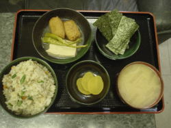 穴空けたら開けっ放し。脱いだら脱ぎっぱなし。その上、ウルサイ。誰ぞを彷彿させる所業。。(髭?ハミ?と想像なさった諸兄、ある意味アタリですけど) 蝉!土中から這い出し穴空けぱなしっ。次は脱いだ服?脱ぎぱなし。ジージーミンミンとうるさいっ。オシッコかけるし。。挙句ゴロンと死にぱなし。。蝉は短命で哀れにてせめて好きに鳴かしてやれ、、とは思えませんぜ。短命って土の中で数年も生きてはるよ。微小な我が庭の穴凹を埋め埋め、一昨年解体屋(蟻サン)を女王ごと追い出したので、いつまでも現物状態の脱ぎ捨てられた殻を拾い集め、遺体もねんごろに収集。。ったく世話の焼ける奴らです。。うざい。 ★鶏ゴボウ炊き込みご飯=鶏、ささがきゴボウ、人参は軽く炒めてから米に投入、カツオ出汁で炊く。インゲンは別に湯がいて炊き上がってから合せると色が美し。 ★バクダン(うずら巻カンボコ)と高野豆腐と甘長の煮物 ★焼き海苔 ★沢庵 ★大根の味噌汁