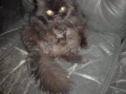 太鼓腹の毛繕い中の愛息子「ぽん太」です。ソファーで毛繕いには訳有りでして、背もたれが無いとゴロンとコケよります。腹筋皆無の様子。。めったとグルーミングしない無精者が頑張ってるのですが、どう見ても贅肉がつっかえて届いてません。。コイツも14歳とイイ歳なのでメタボ対策を。。と食事を減らしてるのに、ちっとも効果が出ない。不思議に思って覗きに行くと、なんとまぁ嫁(ぽあん:チンチラシルバ)の食べ残しをあさり、もしくは横取りしてる始末。。そら痩せんわ。。。