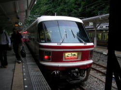 先週も行ったんじゃ。?はいっ行きました。先週は盆参り。昨日は仕事ですっオクルマ引取り。積車で行くのが常ですが、TVCMの「世界遺産・高野山へは南海電鉄こうや号で」が前から気になる髭の提案で電車で行くことになりました。が電車利用が滅多に。。殆ど。。皆無?な私共ですが、大阪人ですもの。南海電車は難波から乗るつーことぐらい知ってまっせ。。お店スタート徒歩で沢良宜/モノレール。門真/京阪電車。淀屋橋/地下鉄。着いたっ難波!このルートが果たして最短的確であったかは不明。。喰いモンと飲み物(母は勿論ビールね。長いのと短いの)を調達して切符売り場で高野山・大人2をポチり。ようようとホームへ。何番線?首がダルくなるほど表示板を見て高野線発見。待っていたのは橋本行きの普通シートの電車。。一挙にテンション↓。。一度乗込むも遠足気分がぶっ飛んで〜。。ってよりも飲食いし難いじゃん!ホームの端に立ってはる、ギター侍にそっくりな駅員さんに「こうや号に乗りたい」と訴えたら、もうじき来ます。特急券を買えば乗れます。とのこと。いそいそとビール缶を抱えて特急券購入。これで安心。遠足気分復活!券を見れば、禁煙か。。えっ?て事は喫煙有り?又又、ギター侍の所へ訊きに行く。ホーム外の券売場へ交換しにビールと喰いモン、しっかと持って小走り。。でもぉ念願のロマンスシートでビール飲めてよかったぁ〜〜髭いわく、クルマで行っても助手席でいつも飲んでるじゃん。。確かに。