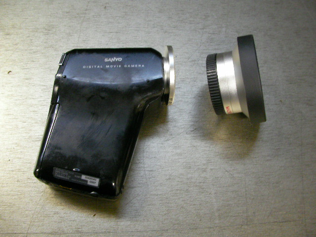 車載Vを広角で撮るべく。。チッコイがウリのはずなザクティ君に、、アダブタ接着剤固め。。。予想外の、カラダに不似合いな、レンズ装着されるを知る由もないザクティ君でした。。。。