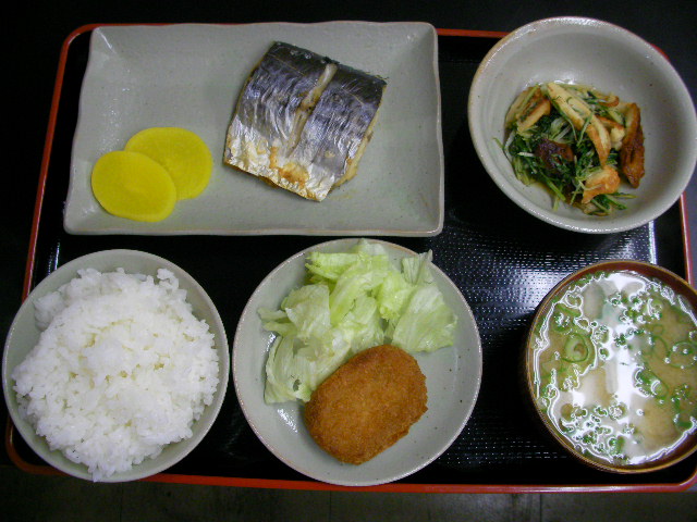 サゴシって、、知ってる? 鰆の小振りなヤツだよん。サワラは魚へんに春って書くんだから、春にはデカくなるのかな?そこんトコ不明だけど名前が変わるんだから出世魚なのかね?? ★サゴシ=軽塩して焼くだけ。 ★水菜と竹輪の炒煮 ★コロッケ=平和堂のお惣菜さ。トースターでチンしてみた ★豆腐とネギの味噌汁