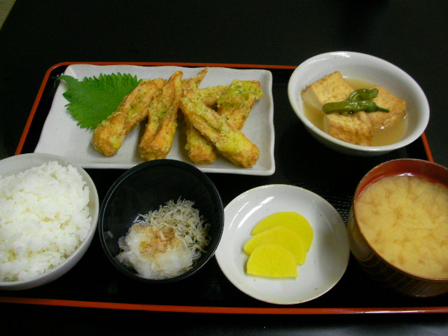 めっちゃしっとりの絹揚げ、殆どお豆腐的。芯まで煮含めたいので昨夜のうちにお出汁で煮て、一晩寝かしときました~ 今日爪楊枝プスプスシシトウを投入。 ★厚揚げ炊いたん=関西は煮物ってあんまり言わないような。。なんでも「炊いたん」で料理名になるのが凄いかも ★チクワの磯辺揚げ=天ぷらの衣種にアオサを混入するだけでチク天が磯辺揚げになるマジック ★大根おろしwithおかかwithおじゃこ(ちりめん) ★大根の味噌汁=短冊大根ザクザクに大根おろしの汁も投入、捨てるトコ無し。ジャパンエコやね。