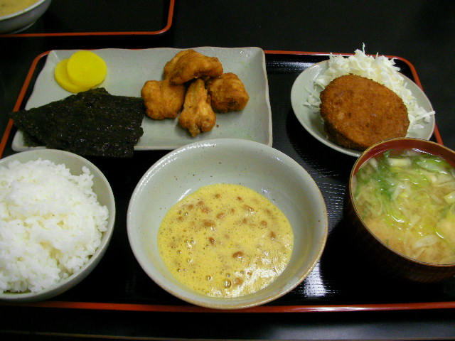 日曜から喉チンコぱんぱんの母です。やっぱチン○有ったん?てかっ 喉だよっ 扁桃腺!首の上部左右ぷっくり、外見で解る。何も飲み込めん。(ウソ。酒は呑む)。。で、味見不可。そこんとこ、夜露死苦! ふぐを縁起担いで福と言う。おせちも苦しい語呂合せ的云われ云々。。ちょっとヤッてみよ~ ★福の黄金揚げ=ふぐ、ゆーてもサバフグだぜ。旨いけど鍋には無理。*輝く福? ★馬鈴薯の大判揚げ=コロッケじゃん*財に恵まれる? ★粘り豆の黄身合え=卵入り納豆だけど。。*マメに粘り強く働く? ★豆富の味噌汁*角たてど崩す易し? ★のり=味付海苔だけど。。*波に乗りて光沢な髪黒く? ★大根の小判漬け=タクアンやけど。。*小銭に不自由無し?・・・・・ コジツケ完了。。あ゛~邪魔くさ。。 要は日々の糧と健康に感謝!やね! 喉ちんこ腫れたら食えねーよーー ダイエット出来て良し!とするか。。。