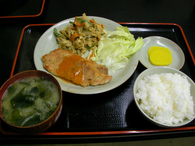 引き続き・・喉ちんこパンパン痛で寝不足・目の下クマ子の母ですが。。配膳の位置違えするほど脳はトロけてませんぜ。。Y井クンの膳を写ッタのだ。Y井クンはサウスポーなので逆配膳で正解。 ★トンロースのピカタ ★野菜入り煎り卵 ★ワカメの味噌汁