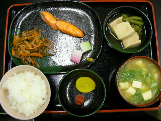 まるで朝御飯。朝御飯の定義って有ったけ?知らんけど。。。 ★焼きジャケ=甘塩だったのでチョイ塩。ところで何で鮭をシャケというのやら... ★かまぼこ ★コンニャクとニンジンと小肉のキンピラ=ゴボウのキンピラと同じ作り。ご飯のお共にヨロシイぞ ★高野豆腐=甘過ぎが苦手なので出汁を強めに炊いた ★豆腐とネギの味噌汁 ★タクアンとカリカリ梅 あっさり粗食だけど何故か飯がすすむ。不思議