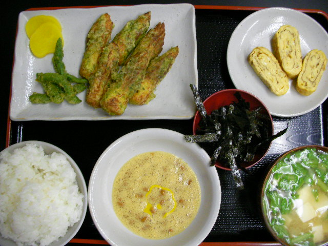 母、ヒゲと感染し、勢力を緩める気配の無いフジモ菌。今日は安井クンも感染した模様。。赤いお顔で御鎮座してはる。食欲も落ちたみたいで、、ご飯よそうの見てたら小盛!だったぞっ かなりヤバイんちゃうんかーー?? 残るは・・あと2人。。。(。-∀-)ニヒヒヒ ★チク天 ★出汁巻き玉子 ★卵入り納豆・もみ海苔 ★春菊と豆腐の味噌汁 ヤク(風邪薬だよっ)のやりすぎか、微熱のせいか、、ぼーっとしてコレっぽっちに手こずった。何よりヤバいのが~~、味が解らんっ