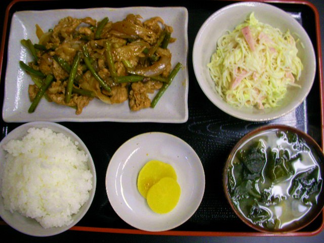 料理って名無しが多いんよねー。有る材料で作るんだからしゃーないわ。適当にネーミングしとくか。。★豚とニンニクの芽の味噌炒め=豚コマに酒・塩胡椒放置。ニンニクの芽と玉ねぎ炒めて塩胡椒。放置豚を炒めて・豆味噌・米味噌・味醂・砂糖・酒を合わせて置いたタレで更に炒めて、先に炒めといた野菜を投入。 豚とニンニクの芽なら味噌味かな~と想像の一品。 ★春雨とハムとキャベツのサラダ=味噌味でコッテリの口直しのサッパリが欲しい!と感じた。マスタードと酢を利かせ気味 ★ワカメ味噌汁 材料に相性のいい調味料。体調による食指。家庭料理ってそんなモンだ!