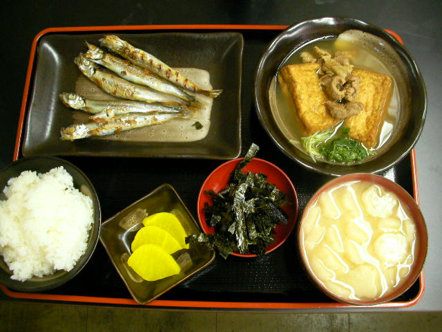 シシャモって頭から尾っぽまで食べれちゃうからイイね!ゴミ出ないし、骨も食っちまう訳だからカルシウム補給にもなるってもんだ。★シシャモ=柳葉魚って風流な名だけど風流な調理法ってあるんかな?レシピ見つけてもヤル気無いけど。。スタンダードに炙りで! ★絹揚げと牛すじ煮=モチロン前夜仕込みなんで中まで味シュミシュミ。おでんみたく、練りからしで ★タクアン&もみ海苔 ★麸の味噌汁