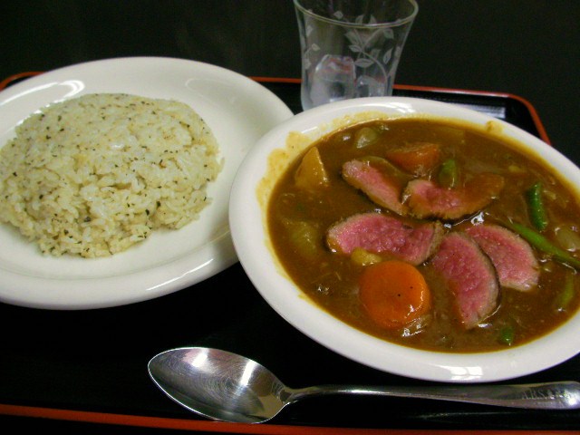 ビーフシチューに白飯は合わん!のでパン?腹持ち悪いしな。。パスタ?昨日食ったし。。。。苦肉の作?だけど結構イケルで~やってみそ! ★バジルライス=普通に米、洗うて水少なめにコンソメ・乾燥バジル・オリーブオイルを放り込んで炊くだけ。炊き上がったら風味付にバター(恵比寿はマーガリンやけど・・)を落として混ぜる。ガーリックも入れようかと思ってんけど、シチューにシコタマ仕込んでるしヤンペ。 ★ビーフシチュー=牛スネ肉・トマト缶・ニンニク・セロリ・ロリエ・ワインでグダグダ煮。ブイヨンで煮たジャガ・玉ねぎ・人参を合体。牛スネは崩れて原型をとどめ無いので簡易ローストビーフ(オーブン不要。フライパンでOK)とインゲンのバター(マーガリン)焼きをトッピング