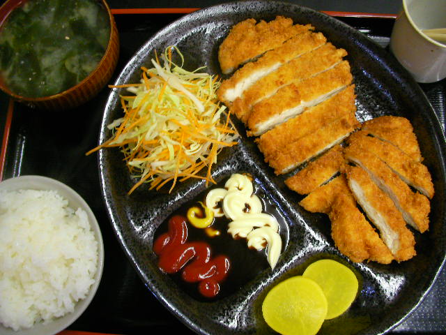 お水取り済んで春分の日を迎えたら寒い心配いらん、春到来が関西の常識のはずやけど、今年はどうざんしょ?梅の開花もえろぉ遅かったし、例年より桜の蕾みも硬いで。。もう二冷え十冷えほど有りそうで防寒アイテムをしまいきれない母です。。 ★チキンカツ=鶏ムネ肉の皮をひん剥いてカロリダウンを図ったチキンカツは月2ペース出番の恵比寿ランチの定番中の定番 ★ワカメの味噌汁=海草に余分な油を排出する効果有りと某TV番組で見た時からフライには必ず。。真偽の程は知らん。