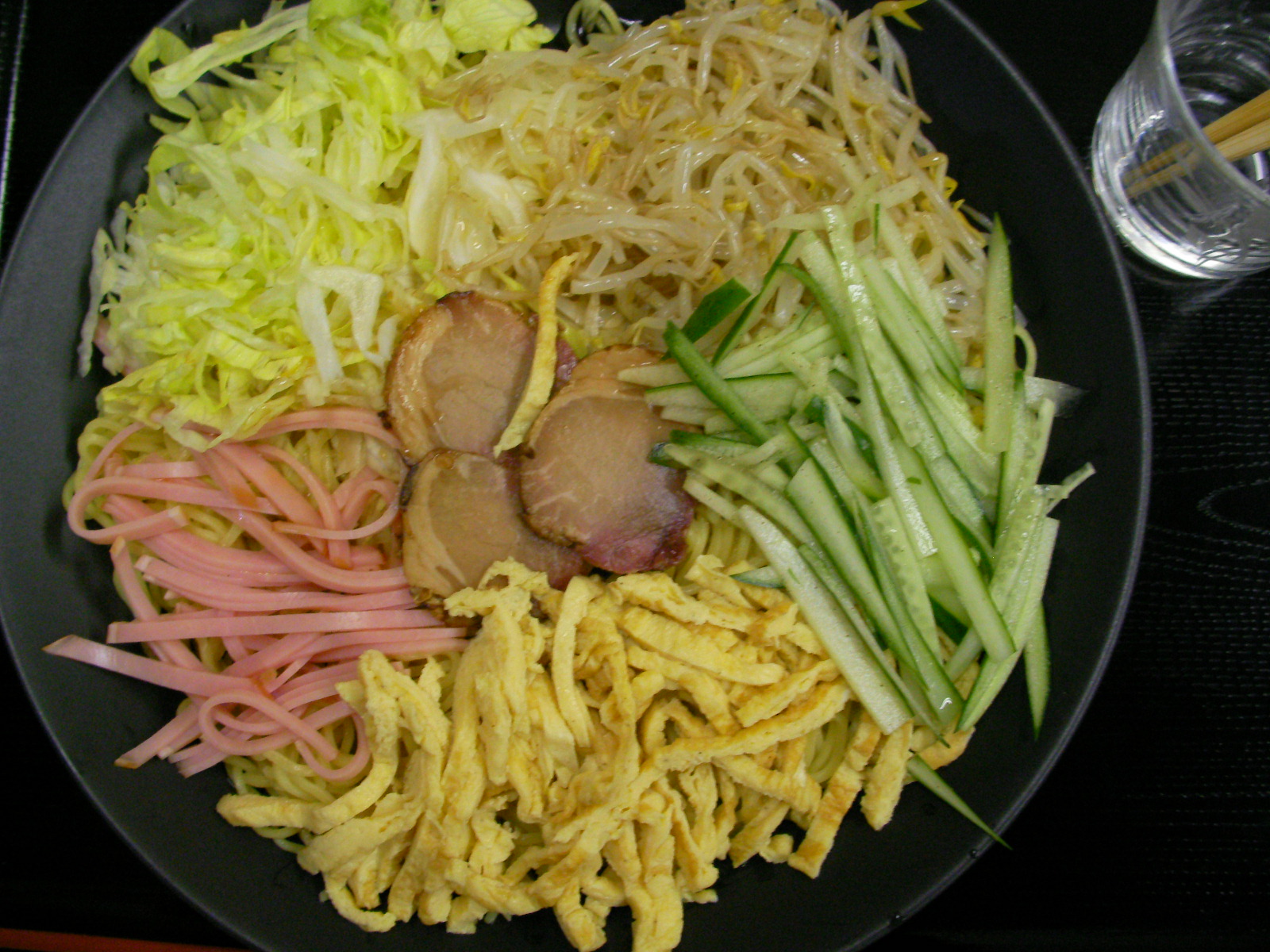 冷し中華、始めました。。なポスター出始めたかと。 恵比寿ランチには先週登場しました。トッピングはレタス・キュウリ・ハム・モヤシのゴマ合え・太めの錦糸玉子・焼豚。見えませんが、ちゃんと下に麺在中。。1人2玉で御用意したのだけど腹持ち悪い?!夕刻にオヤツの缶をあさってるでっ! 次回は3玉御用意やね。。。 ところで、カスタマー用の冷茶、春は冷し緑茶でしたが、麦茶にシフトしました~ 夏は麦茶っしょ?