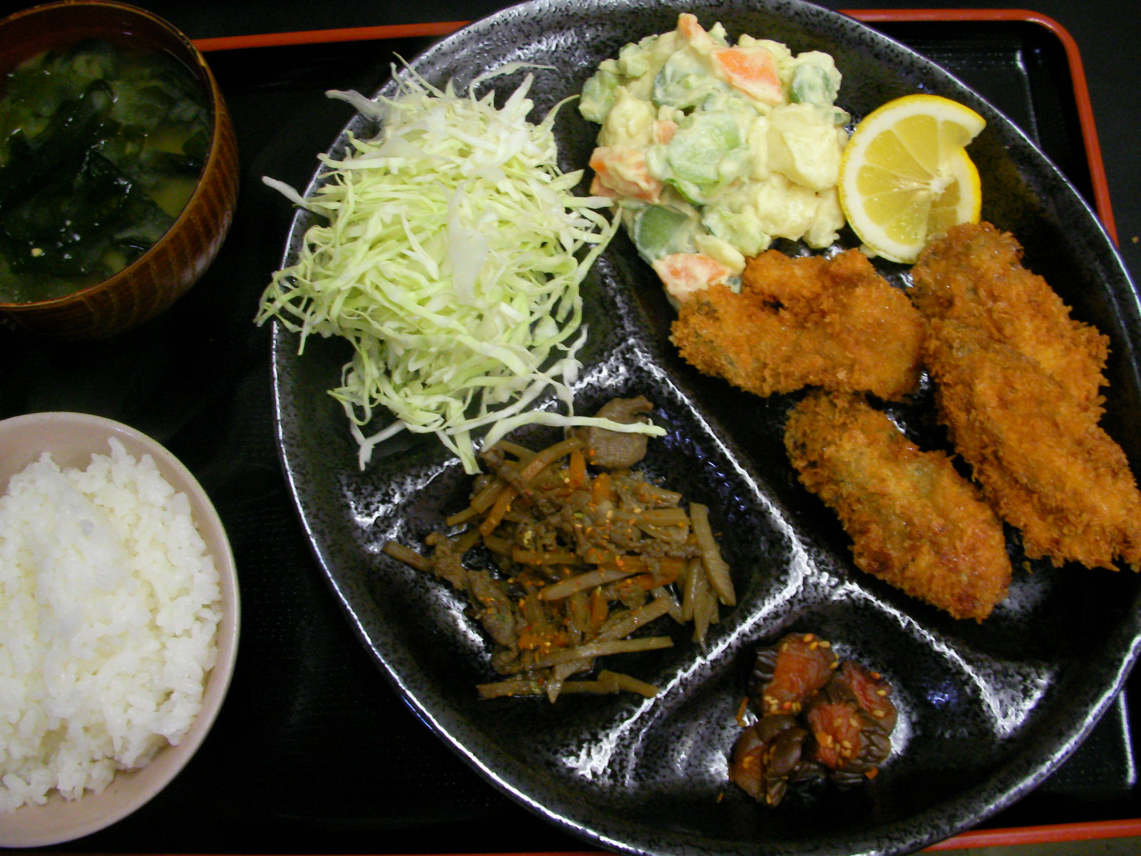 友達の息子が幼稚園児の頃、おキンタマを見せて発した一言:そろ~っと触らな死ぬねんぞ。。「カキフライ」を作る度、思い出す。お粉を塗して衣を付ける時、そろ~と扱う母。本日の牡蠣は2Lサイズ。20年前、幼児だった彼もコレ位になったかな?なんぞ思ってゴメンナサイっ!食べ物の神様のバチあたっちゃう。。 「ポテトサラダ」一昨日、大量に仕込んでたの流用。 「肉キンピラ」きんぴらゴボウの肉入りだよん。「キューちゃん&わかめの味噌汁」