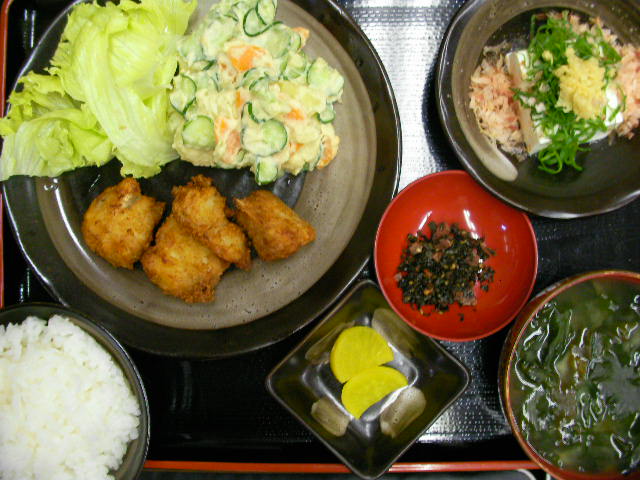 14日火曜日のどえらい雷と豪雨で電話のアダブターがイカレてたようで。。電話が不通状態!だった?!気付きましたのが16日木曜日。何と呑気な...お盆休み中、さすがに電話も鳴らんわーと思ってまして。。16日朝に電話を掛ける用があって異変に大慌て。。お盆中にTEL下さった方おられましたらゴメンナサイっ お盆も営業しておりましたの。。でスタッフランチ「アンコウ唐揚げ」「キュウリどっさりポテサラ」「冷奴」「紫蘇梅」