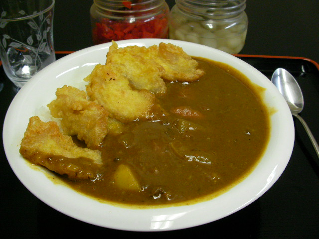 牛すじが柔らかを通り越し崩れて具がさみしい。。は想定内。先日の天麩羅の際、多めに揚げておいた鶏ササミ天をトッピング。チキンナゲットじゃないけど、ササミ天は天麩羅よりはフライっぽくて洋物にも合うでー。揚げ物はオーブントースターで温めるとサクサクのカリカリでお薦め。レンジだとベチョ~となっちまうんでNG。 揚げ物温め得意なヘルシオ的(シャープじゃなくて日立なの)なレンジあるんだけど、取説読むのも邪魔くさく従来通りの母流。。ゆえにトースターはパン用と料理用2台ある恵比寿キッチン。手狭な理由は己のせい。。