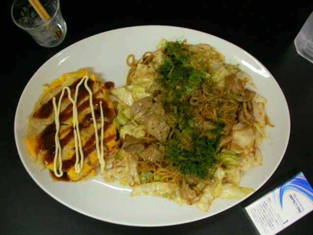 重いんで。。あまり出したくない皿なんだけどぉ、どうしてもペア盛りにしたくて引っ張り出した。「焼きソバ」と先日ユーロカップのネタ余りで焼いてパーシャってた「イカ焼き」のセット。イカ焼きは標準の大きさ。焼きソバは1人平均2.5玉。終業時までひもじくならないと思われる。。それよか皿が重いの、デカイの、流しいっぱいいっぱいで洗うのが難儀。。