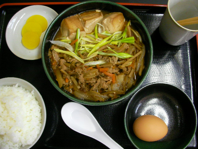 豆腐は出汁で煮込んで寝かして又煮込んで、、を3日繰り返してるんで芯の芯まで味シュミシュミ。ここに牛薄切り肉とゴボウとニンジンのキンピラと玉ネギをブッこんでひと煮立ち。生玉子からめて食す。甘辛醤油味で御飯に合う合うハズで他にオカズ要らんやろ。 気持ちお肉が少ない?!のは、、昨日流用しちゃったからだよ~ん