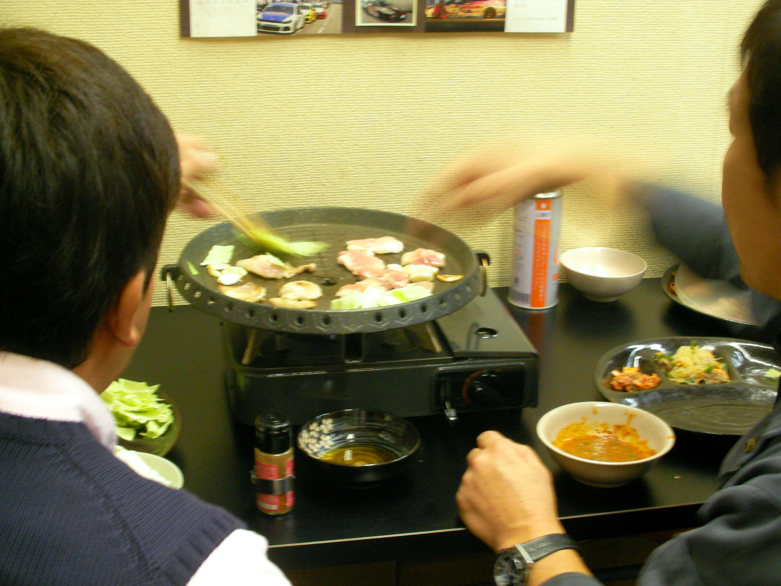 寒いんで暖を取るにも好都合、個々焼きながら食うよろし。居酒屋の画っぽいがアルコールは無し。ウーロン茶のみ。焼ける待ちでランチミーティング出来てコレ又よろし。