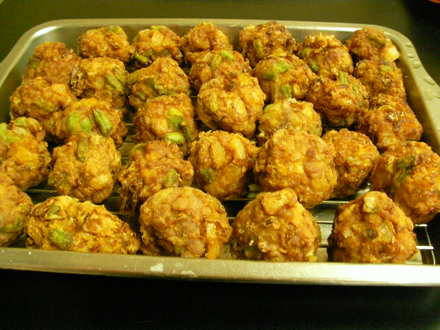 最近スタッフランチの献立がマンネリ化してきたんで>新メニュー開発。豚コマと、どっさり買い貯めた玉ネギで何ぞできもんか。。いつもなら豚生姜:安モンバージョンで1件落着のところを...ザクに切って卵で繋いで揚げてみた。 肉団子と同じちゃうで。アレは挽肉やん。。肉肉しい食感に仕上げるつもりだったんやけど、玉ネギ入れすぎていまいち。。試作に失敗は付きものさっ! 次回に期待してもらおう!