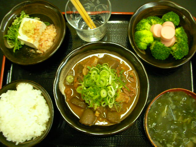 暖かくなってきた御陰で・・超ぉ簡単「冷奴」登場。ショウガおろしてネギ刻むだけで1皿完了の手軽さよ(楽) ぶッコロリ(間違ってないで。当方ではブロッコリーをぶッコロリと呼ぶ。。)茹でるだけに魚肉ソーセージのぶった斬り載せてもう1皿稼ぐ。 手ぇ抜きすぎちゃうかぁ?てか。 すじコン土手焼きの煮込むのに2日かけとるよっ
