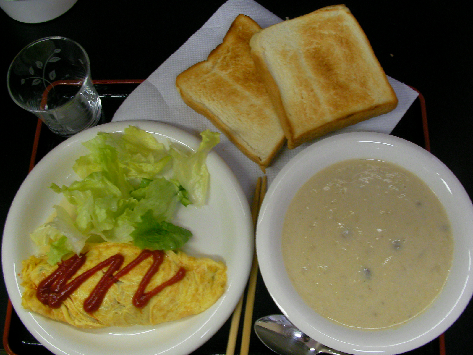 腹持ち的にどーなんだ?って事でめったとパンな日は無いんだけど、小腹減ったら頂き物の菓子食うべ。 見た目、朝食的な感じは否めんな。。mm。。「新玉とハムとピーマンとトマトのオムレツ」 「キノコとキャベツの芯粉砕ポタージュスープ」 キャベツの芯粉砕でご理解頂けたかと・・・ キャベ芯辺りがもったいなくてコンソメスープによくするのだけどぉ、ワンパタなんでぇ。。 牛乳も残ってたしぃ。。。