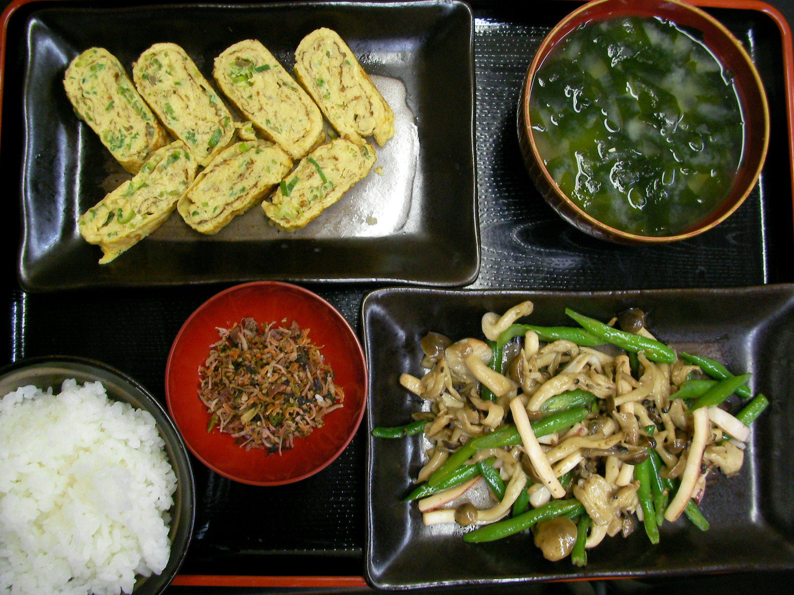 母はタマゴンだ。卵が冷蔵庫にストックされてない家では住めない。食ってよし。眺めてよし。触ってよし。卵サイコー!! 雌鶏を飼いたいっ!のだけど、ヒゲの反対が。。 買出しに行けなかった日には卵の御蔭定食。 「刻みネギin玉子焼き」 どよ?堂々の1品。 「キノコとインゲンのソテー」キノコの出番多数の所以は1個前のブログの通り。