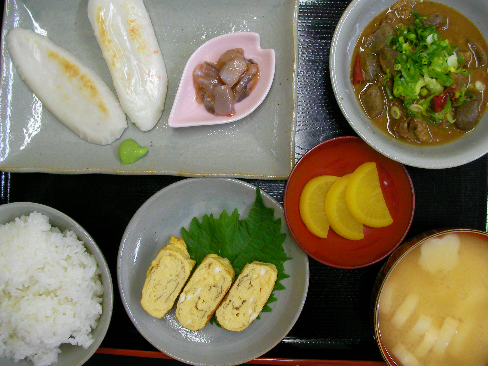 お土産に貰ったカニ笹かまぼこは周知だがハタハタの笹かまぼこは初体験。ハタハタはチビでも脂のって旨い魚だけど、小骨が難儀やから、コレはブラボーな着眼よね。偉いぞ漁協! 骨取りド!下手なFジモもガッツリいける。。 タコ珍味3種は基本の塩辛からいってみよー 牛スジコンニャク土手焼き・玉子焼き・麩の味噌汁で2日酔いにも優しいランチ。 え、誰が2日酔い?ってか。 母は365日酔いやから、、、知らんっ