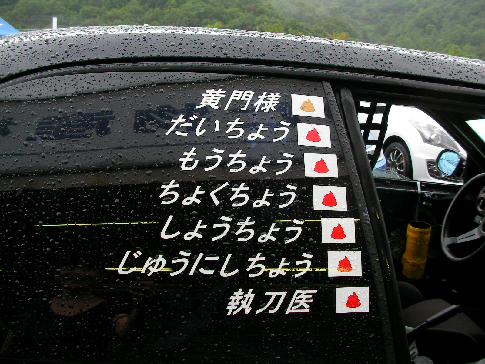 やたら中断多く。。挙句に夕立。。尻切れトンボ感な9h耐久どしたが、例年より暑さもマシでヨシとすべ。 さてタッキーのチーム名、御老公ゆえに黄門さまが定番化してるトコ、面白いエントリー名を適当に・・・と御所望だったので「こうもん」繋がりで盲腸やら小腸やらで、、、どう? 冗談で言うたのに採用されちまったーーーー恐るべし。。。 ま、祭りやからイイよねーーー 母の拙いスナップ画像お客様ルームに展示中。茶でもシバキついでに見てね~ ところで明日定休日~15日盆休み頂きます。けんど15日は髭、鈴鹿予定。 休みに飽きた諸兄、同伴如何?