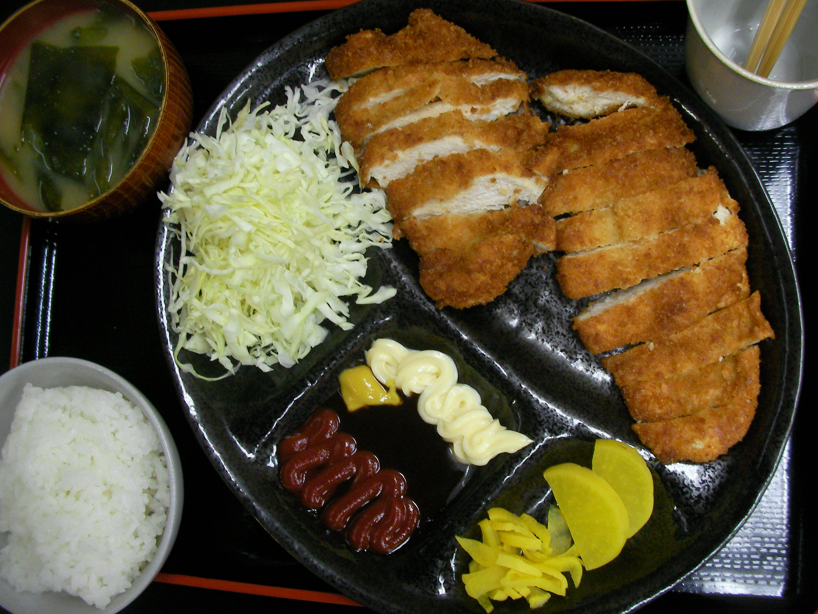 恵比寿スタッフランチの定番中の定番「チキンカツ定食」。定番の所以は・・鶏ムネ仕様で①安価!②高タン!③低カロ!=身体に良さげでガッツリ系。 と謳っても①が1番の理由ね。。予算の都合上。。。