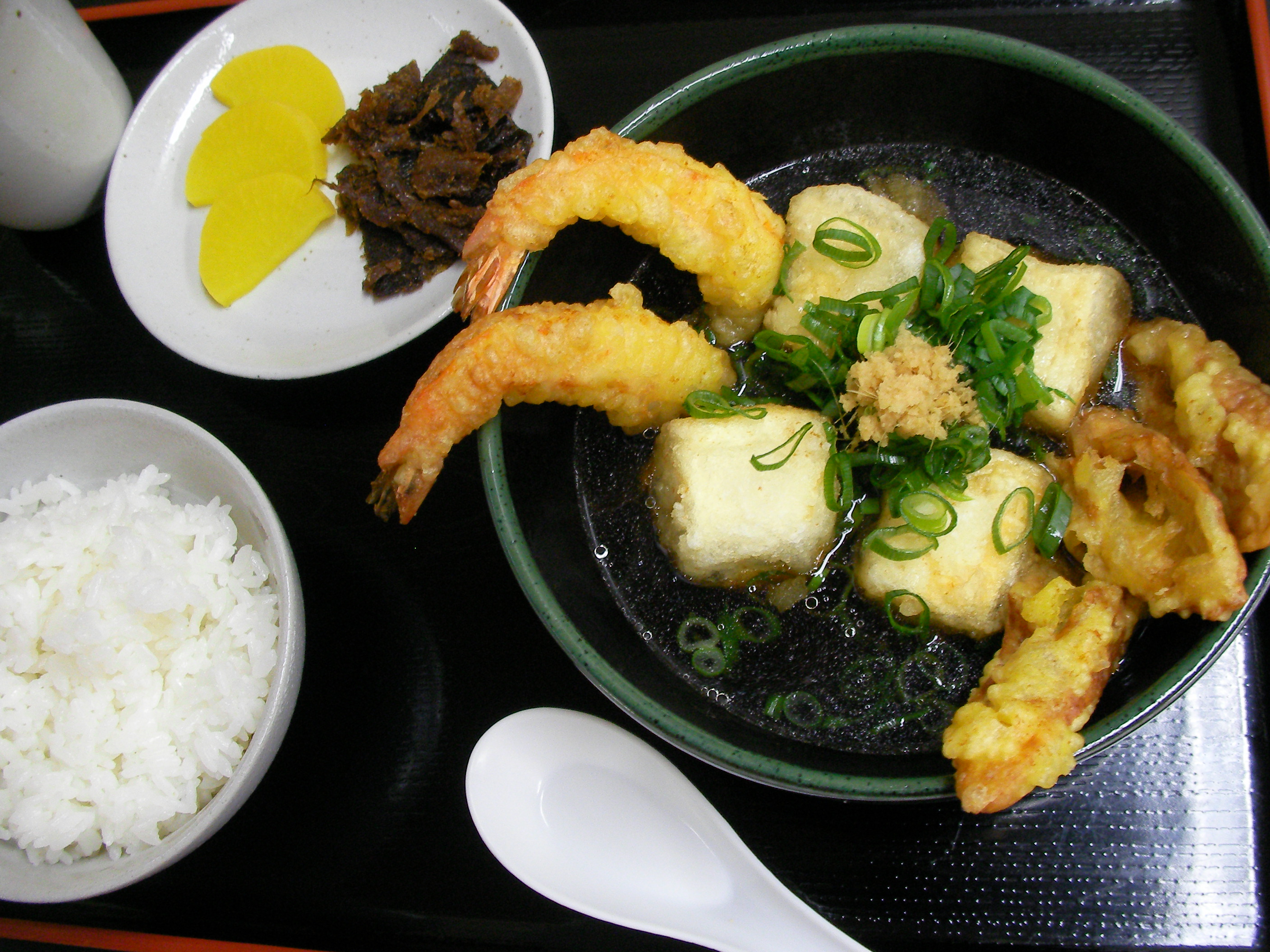 揚げ出し豆腐フェバリット。なんで豆腐だけでいいんだけど、ヤロー共には、そうはいかぬ。。 海老天とチク天添えとこ。。 御飯のお伴にM~さんに貰た昆布の佃煮