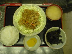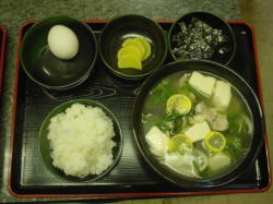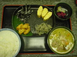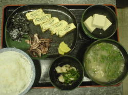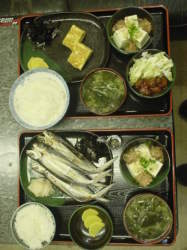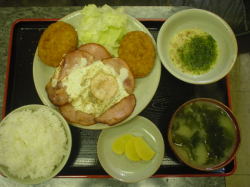 またまた年齢別メニューです。 N爺とハミ→★ミンチカツ ★WベーコンのWエッグ ★焼き海苔と梅干 ★ワカメの味噌汁 髭→★辛子明太子 ★紫蘇醤油漬け ★焼き海苔 ★ワカ玉味噌汁 母→ミンチカツ半分 ★紫蘇醤油漬け ★焼き海苔 ★味噌汁 年取るとズンズン油物が食いたくなくなるよ?? 皆さん若いウチにガンガンいってくださいねっ ダイエットする気無くてもダイエット食?みたいのしか喰えなくなるぜ!人生短し。。 ところで、、髭のトレイをテーブルに置くとチラリと見るN爺。。。もしかしてN爺も高齢者用メニューご所望か??微妙なお年頃だものね。。。。