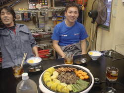 今週「濃い」飯のタタリをちまちまお伝え申したが、、、堺でー。白P君とN爺と合流、堺ロコの白Pの案内で「味楽」とゆー焼肉屋サンに行ってきました。店内に入れば、だだ広く蛍光灯が煌々とBUT煙モクモクで視界悪し。全席仕切り無しの小上がり座敷。昭和レトロチック!皆、テーブルにホイール程デカい(何インチ?)乗せて。。ビール瓶ボーリングのピン程並べてガンガン行っちゃってます。何をどうオーダーして良いやら??なので地元人に御任せして、あとキムチ下さいって頼んだら付いてきますとのお応え。周りのテーブルに有る大盛りモヤシ、付いてきますから。。ウーロン茶、ポットで来ますから。。と何でも付いてくる?!の。。オーダー終了後、メニュー見れば。。げっ安ぅ 時代が止まってる? お店全部昭和レトロだっ 周囲のテーブルに有るでっかい丼椀が気になる母、白Pに訊ねたらモヤシベースの端肉たっぷりスープだとの事でオーダー。多すぎっ 2人で1個で充分ですやん。もうお腹満々キンキン。 気になった方々、ABSへお問合せ下さい。お店の詳細教えてあげますよん。 タレも小皿で無く、小鉢でたっぷり来ますっ BUTっタレの甘 さはニンニクの甘さとの予備知識を貰いました!(From白P父)まさに、That's right! 帰りの近畿道でムジュムジュお腹のこそば い髭と母でしたーーー。