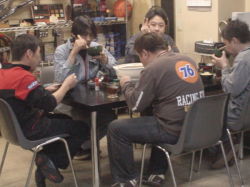 かやく御飯はこの間の残りチン。天麩羅を揚げ立てジューっていわしたかったので待ってたけど無理っ!で揚げてスタンバイ。さすがに麺投入はタイミング重要。後5分と時間をきったのにPITから帰ってこないっ 延び延びなるから早くぅ〜と催促して今食す。デザートはデカ大福1個3等分。A山サンに頂いた信玄餅。N爺、白P、髭、お疲れさん!早、喰え。食うたら帰るぞ。眠たい。。。。。ユーロ当日までにバテちゃうぞーー