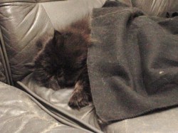髭が大好きな風゜太君。ちょっとトイレに立った隙にスペースを奪われましたーー。去年生死をさまよった風゜太が心配でガレージで一緒に寝てる我々。。。至って元気!仮病説もチラホラ疑惑ですが、高齢なのは否めず。。 ちなみに髭が纏ってる毛布に白点多数なのは、ガラではありませんので念の為。 タヌキ型猫のぽん太がフミフミした後です。。。