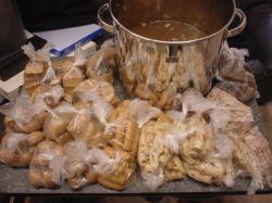 13号さんはチャリンコの速度で日本縦断を目論んでるらしい。。お迎え準備にニュース見るのも飽きたぜ。とろすぎですやろぉ。。リンゴ台風と別名貰ったヤツは100キロの猛スピードでぶっ飛ばして行きおったらしいでー。青森のまさに収穫時のリンゴ落としまくったヤツ。逆発想で「落ちないリンゴ」と命名して受験のお守り縁起物になったは記憶に新しいっすね。今から行くとTELでも下されば雨戸閉めて待っときますのにハッキリしはれへん、ほっとこぉー。。。★鶏ゴボウ炊込みご飯=米買いました。昨深夜に。真夜中でも米買える時代ですわー便利ぃ。 ★リサイクル豚汁=豚ちりの昆布出汁と残り具材を流用。えー感じの出汁を捨てるには惜しくイチョウ大根を煮て味噌仕立て。 ★白菜浅漬け&沢庵 ★もみ海苔