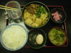 牛豆腐。スキヤキじゃないねん。。スキヤキ未満。牛コマを炒めて砂糖、醤油、絡んだところで出汁。煮立ったら豆腐(木綿でも絹でもヨカ)入れて弱火でコトコト。消火。前夜作業終わり〜 これで一晩寝て頂く。すると豆腐の中まで味浸みるのよん。翌日>人参・白菜・白葱・麩・うどん投入。中火で10分位煮込んだら完成。溶き卵に潜らせて食す。しあわせ〜。具材も生卵もスキヤキと変わらんやん!とお思いか? ちゃうんねんっ アッサリしてるねん。お汁飲めちゃうくらい。しかも安上がり=牛コマだぜ。。