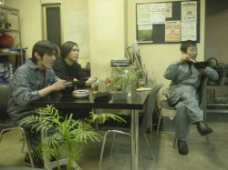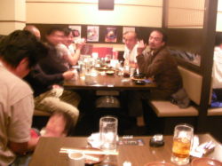 一昨夜白P君とKチャンが作業のHELPに来てくれました。Mキネンもご一緒。先週のブログに書きました様にかなりの酒豪の彼女。。作業終了待ちの間中、画のチープなワインを2人で飲み倒しておりました。超ハイペースなMキネンと母。知らぬ人が見たならばグレープジュース飲んでる?と思われるハズ。。ホロ酔いになる頃PITより撤収してきはったので夜食どーしよ?白P、Kちゃん、Mき、N爺、髭、母。キャパ多いし、ホロ酔い母は調理意欲皆無。こんな時は王将だっ!当店の近所の王将は朝の5時までやってます!偉い!料理の種類多いし、リーズナブルだし、ちょこっとサイズのメニューもあって大助かりなお店です。皆でオーダーすればテーブル隙間無く皿並び嬉し。一応「餃子の。。」ナンだからセンターには餃子でしょ。Mキと母は「ちょこっと天津飯」とゆーミニサイズを更に半分づつミニミニにしてビール飲んでました。パブリックなお店ですので当然、大瓶。各1本担当。もう1本オーダーしようかな〜と思う頃に飲まないヤロー共の喰うスピードはハンパ無く速く、ENDとしました。真夜中だしね。。。