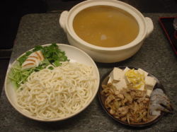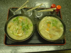 これからの季節、肌寒い時や夜中に小腹が。。な時に重宝なレシピ。ABSでは冷凍のウドン玉か真空のウドン玉を常備してまして若者が多い時はカレーウドン、中高年多しの時はアッサリでコク系な夜食にウドン率高し。昨夜はK山サン、N爺、髭とジジイばっかなので後者ね。 出汁を用意しておいて、ゴボウスライス、鶏モモをフライパンで炒めて軽く塩。コレを出汁にぶっこむ。ウドン玉もぶっこみ一煮立ち。柚子を一絞り。刻み柚子皮とネギ。コクがあってさっぱりウドンの出来上がり!15分程で出来ちゃうよん。御試しあれ!柚子は季節物なので良く洗ってからラップでくるんで冷凍しておくと1年中使えまーす。お昼の残り飯チンと辛子明太子&沢庵添えてみました。