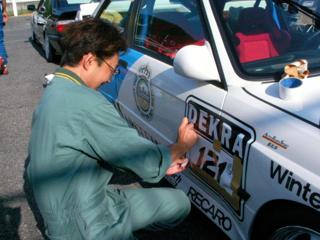 準備風景〜 ん!? 何、この貧相なゼッケンの貼り方っ! |