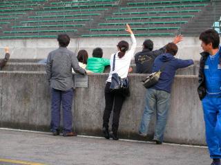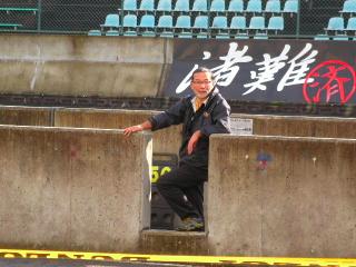 表彰式後はチームメイトの応援に復帰だ! 忙し |
