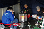 テント内で暖を摂る |